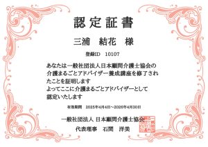 このたび、「介護まるごとアドバイザー」の認定を取得しました。